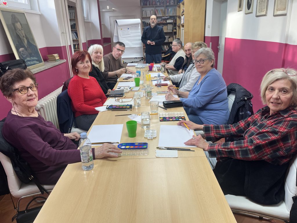 Danas je započeo ciklus likovnih radionica koje će se u Domu održavati ponedjeljkom u 16,00 sati pod vodstvom volontera, također umirovljenika Mladena M. Piseka. Polaznici su korisnici Doma i Gerontološkog centra Dubrava.